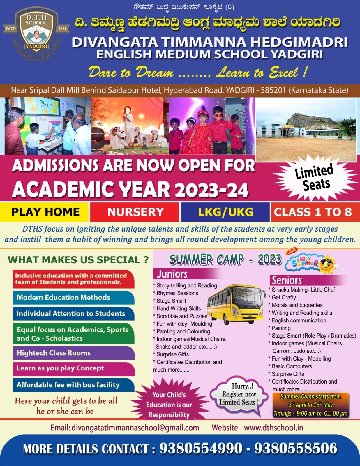 DTHS Welcomes and Thanks your interest in pursuing admission in our reputed school in Yadgiri district.